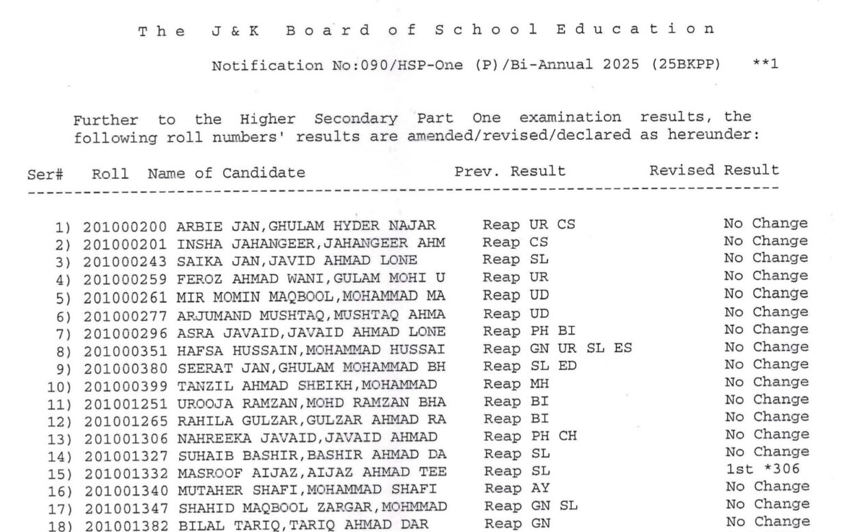 JKBOSE Declares Class 11th Revaluation Results for Bi-Annual 2025 Session Srinagar, Dec 26: The Jammu and Kashmir Board of School Education (JKBOSE) has officially…