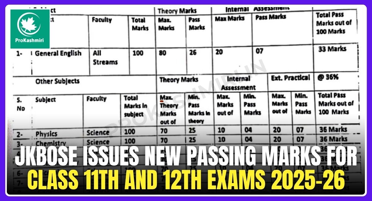 JKBOSE Issues New Passing Marks for Class 11th and 12th Exams 2025–26