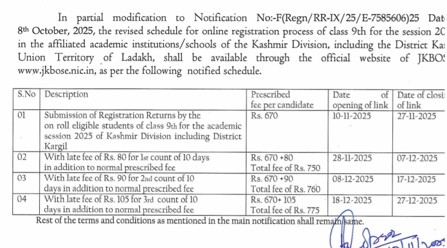 JKBOSE Gazette Released for Class 10th Bi-Annual Private 2025: Download for Jammu & Kashmir Divisions