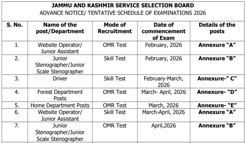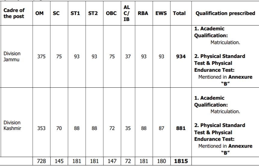 All applicants must be permanent residents of Jammu and Kashmir and should hold a domicile certificate issued under S.O. 166, dated May 18, 2020. Applications from outside the union territory will not be accepted.
